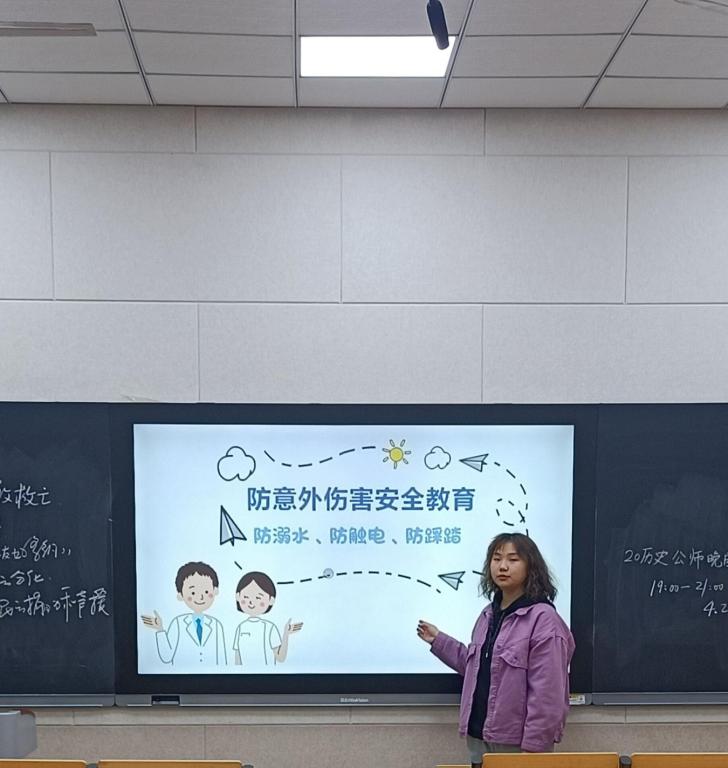 为响应学校校园安全文化月,加强学生教育管理,4月22日至4月23日晚上,大乐透 学生会权益部于文史楼各班教室开展了“防溺水、防触电、防踩踏”宣讲教育活动。
