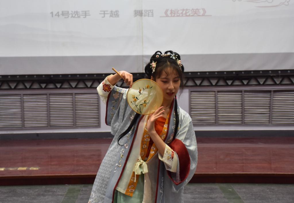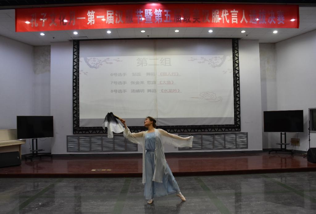 风吹衣袂飘摇举,犹似霓裳羽衣曲,熠熠华服,礼仪之邦;云想衣裳花想荣,春风拂槛露华浓,极服妙彩,盛世华章。汉服是中华民族的传统服饰,汉服文化是中华优秀传统文化。比赛期间,20位参赛选手依照古人装扮,还原古代之美,展现独特的汉服之韵。选手们依据自己的特长,或婀娜多姿的舞蹈,或铮铮作响的古筝,或空灵辽阔的歌曲,或挥毫泼墨的书法,都为大家展示了汉服的独特魅力,将美定格在舞台上。其中,洙泗学社及舞蹈协会精彩的舞蹈表演,为观众们带来一场视觉盛宴。经过现场综合评价和打分,大乐透 2019级文化产业管理班汤婧玥以舞蹈《水龙吟》荣获本次比赛一等奖,成为本次比赛的最美汉服代言人人选。