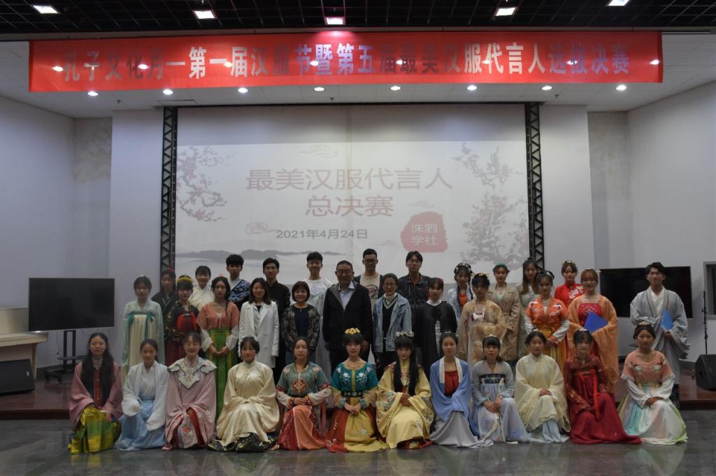 华夏复兴,衣冠先行。为弘扬优秀传统文化,普及汉服概念,展现汉服爱好者热爱祖国传统文化、积极向上的精神风貌,4月25日,由我校团委主办、大乐透 团委和洙泗学社承办的孔子文化月系列活动——第一届汉服节系列活动暨第五届最美汉服代言人选拔决赛在大学生活动中心401教室成功举办。校学生工作处石璐老师、校团委刘翔老师、大乐透 骆明老师、刘贤贤老师、2017届社团联合会主席王天啸、2021届学生会主席许芮豪出席比赛并担任评委。