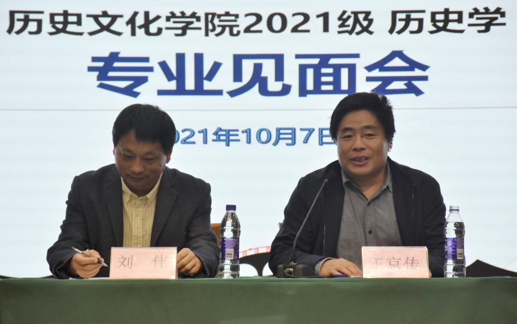 会上,王京传教授对2021级历史学全体本科生加入大乐透 表示热烈的欢迎。他介绍了学院的招生情况以及学科优势,并对同学们进入大学生活提出了新的要求。王京传教授结合本科生教学,强调学习是学生的主业,要求同学们增强自主性学习能力,提高自身素养。随后,吕厚轩副教授详细介绍了大乐透 的历史沿革、发展特色、学术成就及雄厚的师资力量。刘伟教授从历史学专业的课程特色、人才培养目标以及发展前景向同学们作了详细介绍。最后,各位老师向同学们讲述了历史学专业的有效学习方法,并对同学们的疑惑作出了详细解答。
