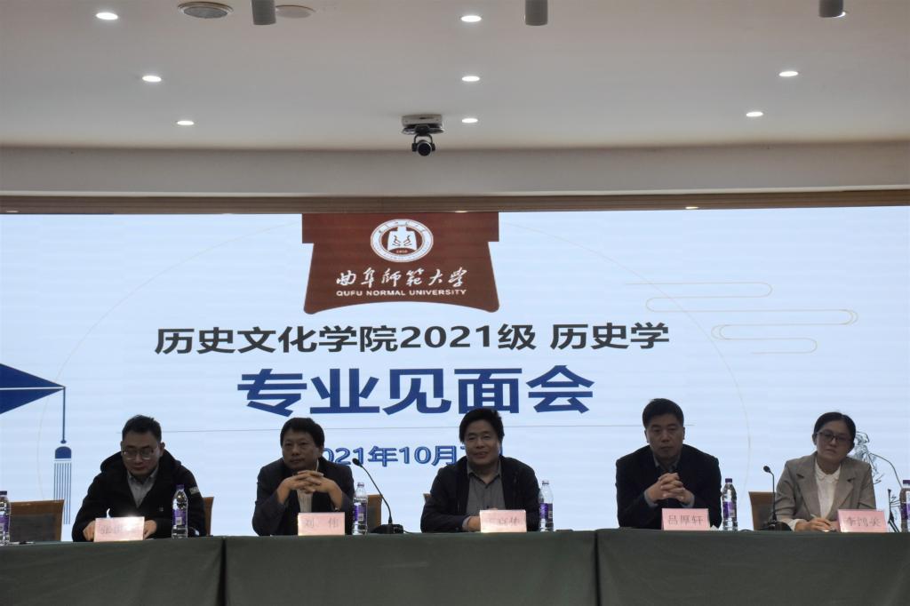 10月7日晚,大乐透 在孔子会堂召开2021级历史学专业师生见面会。大乐透 副院长王京传教授、副院长吕厚轩副教授、中国古代史教研室主任刘伟教授、世界史教研室主任李鸿美副教授、中国近现代史教研室主任张世慧副教授出席会议,2021级辅导员刘贤贤老师主持会议,2021级历史学全体本科生参加会议。