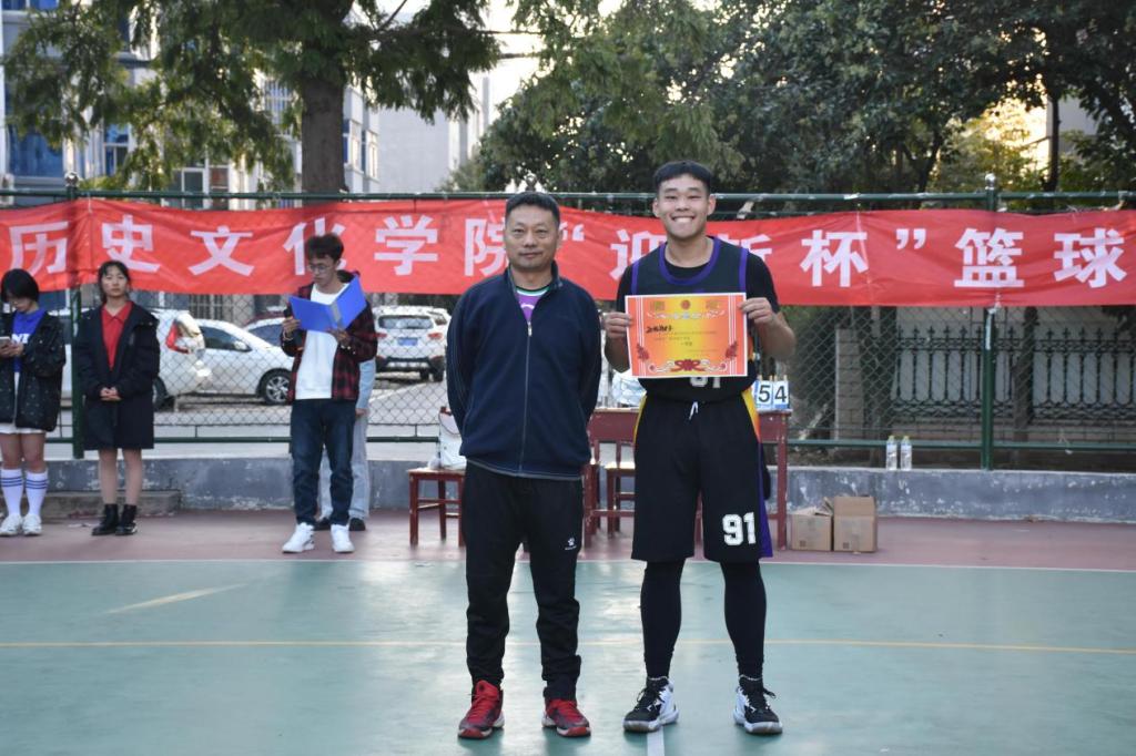 本届篮球赛参赛队伍包括2020级、2021级本科生共14支队伍。球场上队员们你攻我守、各显球技、奋力比赛,赢得了场外的阵阵欢呼。同时,师生友谊对抗赛也随之进行,加强了师生间的交流,并助推现场气氛达到一个新的高度。此外,啦啦操队员们神采飞扬,舞姿飒爽,在球场中展开激烈比拼,为赛场增添了一道亮丽的风景线。经过激烈的比拼,2020级历史三班荣获篮球赛第一名,2021级国学班荣获啦啦操比赛第一名。
