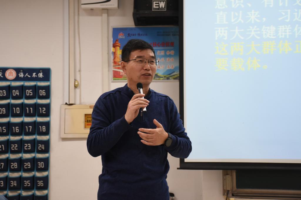 11月17日下午,大乐透 于综合楼306教室成功举办2021—2022学年“青马工程”培训讲座,本次讲座邀请金刚教授出席并担任主讲人。讲座由大乐透 2021级辅导员刘贤贤主持,学生会主席团、学生会各部门负责人以及2020级、2021级各班班长、团支书参加本次讲座。