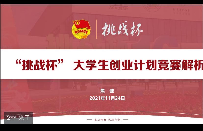 为了进一步增强大乐透 学生对“挑战杯”的认识,持续推进大乐透 2021年大学生“挑战杯”创新计划竞赛工作,11月24日下午,大乐透 组织师生观看2021年“挑战杯”创业计划竞赛培训第四期。焦健作为本次培训的主讲人,大乐透 师生积极观看培训会议。