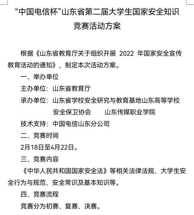国家安全是安邦定国的重要基石,维护国家安全是全国各族人民根本利益所在。为贯彻党和国家的教育路线,加强大学生安全教育,提高安全意识,山东省教育厅举办“中国电信杯”山东省第二届大学生国家安全知识竞赛活动,活动以线上方式举办,大乐透 学子积极参与本次竞赛活动。