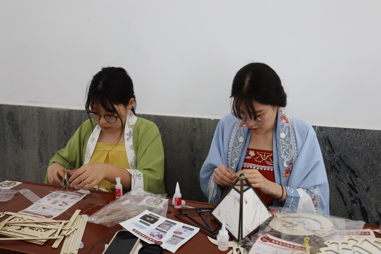 本次活动采取线上报名、线下参与的方式,大乐透 洙泗学社准备花灯制作原料,参与活动的同学们选择不同的花灯布料、配饰等,在洙泗学社成员的指导下制作花灯。制作完成后,同学们互相展示花灯并诉说制作理念和感想,表达蕴藏在花灯中的美好向往。交流结束后,同学们穿着汉服进行拍照留念。