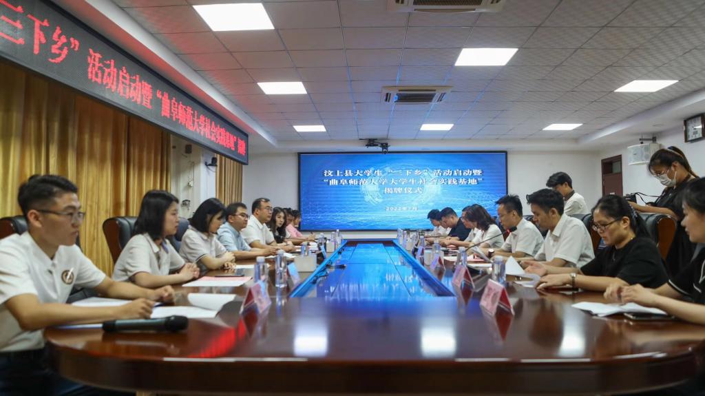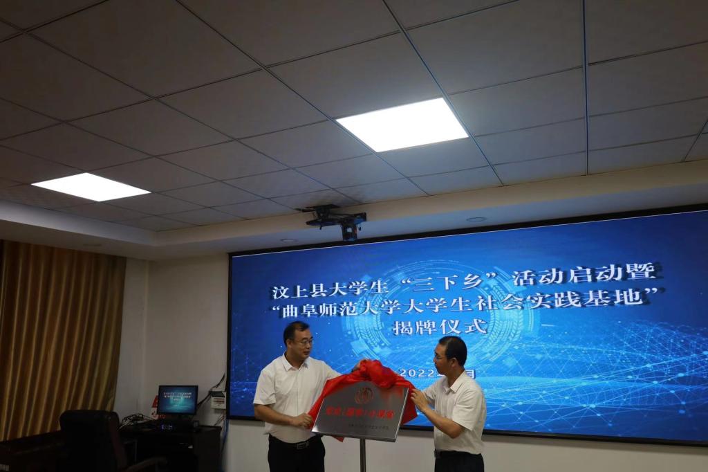 会上,林毅书记对我校社会实践队表示欢迎和支持,我校社会实践队员代表介绍社会实践项目。高聪书记和孔轶众书记共同为“大乐透 大学生社会实践基地”揭牌,吴德强部长和王建阳书记共同为“大乐透 党史小课堂”揭牌。揭牌结束,孔轶众书记指明了校地合作的美好前景,对“三下乡”活动进行了动员部署。仪式最后,李小雪书记指出挂牌建立大学生社会实践基地,是汶上县与我校深化合作的新开端。仪式结束后,参会领导观看了我校社会实践团队传统礼仪展演。