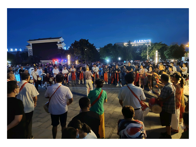寿州锣鼓是流传于寿县以及沿淮周边市、县的一种民间传统表演艺术,是古老楚文化积淀的产物。2006年,安徽省人民政府批准寿州锣鼓列入第一批省级非物质文化遗产名录。在采访过程中,老人表示,每天傍晚他们都会自发的在寿春广场进行演出,他们的队伍里上到90岁的老人,下到7,8岁的孩童都有参与。近年来,寿县日益重视楚文化保护与开发工作,按照优秀传统文化创造性转化创新性发展的要求,全面加强楚文化挖掘、开发、保护、利用工作,进一步推进以寿州锣鼓为代表的民间艺术的传承保护。“寿州锣鼓”也多次登上大型舞台,参加央视“心连心”艺术团赴皖西革命老区霍山慰问演出,多次参加上海国际旅游节和农产品交易会,参加首届中国农民歌会,获得第十四届中国民间文艺山花大奖,山西洪洞举办的“远中杯”全国鼓王邀请赛“最佳鼓王奖”,第三届安徽省花鼓灯会演出二等奖等。但是,寿州锣鼓作为楚文化的代表之一,在现如今却面临着发展的困境,传统手艺人的年事渐高,却又缺少接班人,造成了“断代”现象。加之锣鼓自发性的表演又逐渐跟不上现在的社会趋势,寿州锣鼓的发展收到很大影响。锣鼓老手艺人朱树功在谈及这个问题是也表示,他们会在店铺开业时进行汇演,这一方面反映了寿州锣鼓的接地气,但另一方面也折射出了发展的困境。