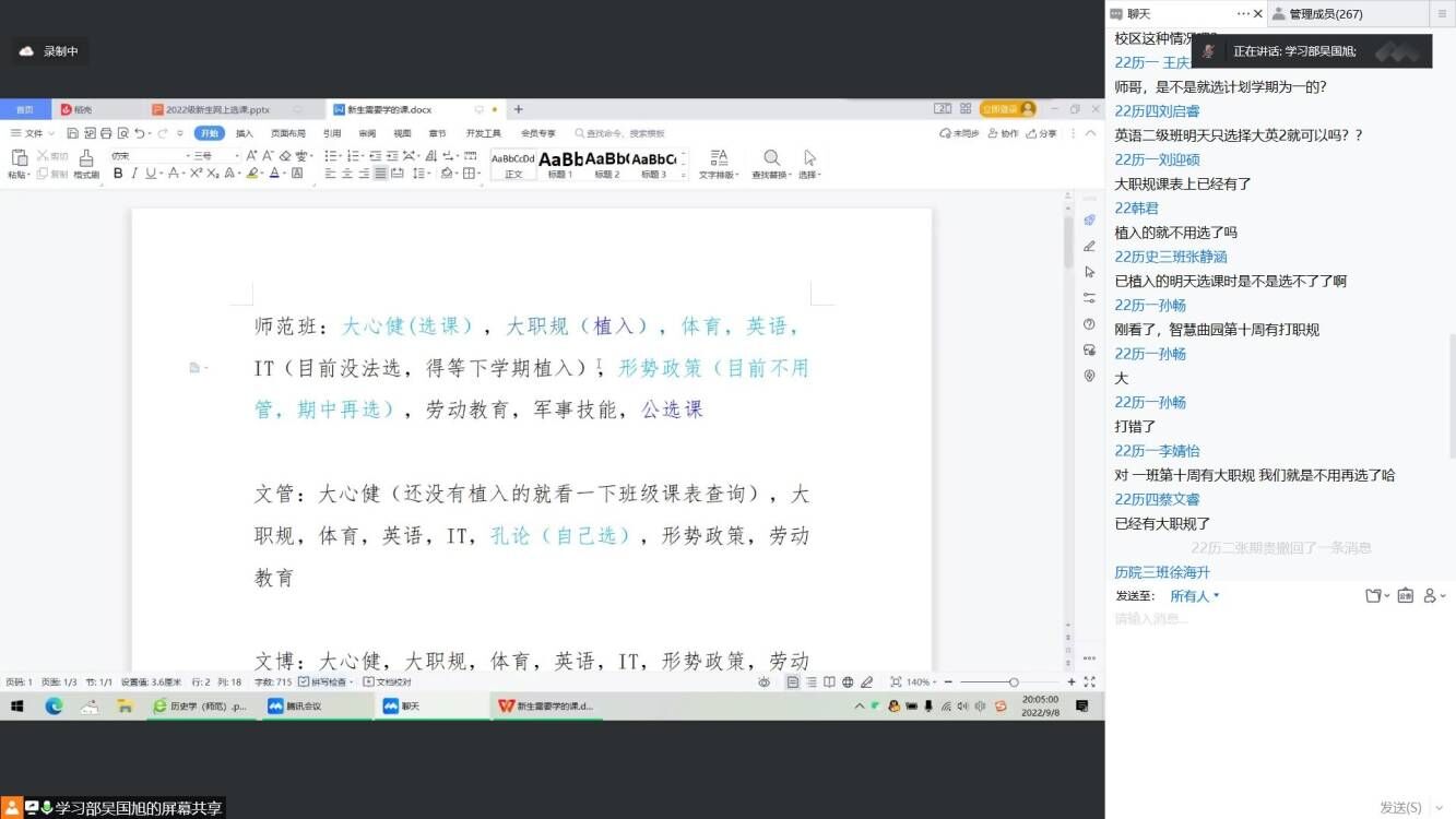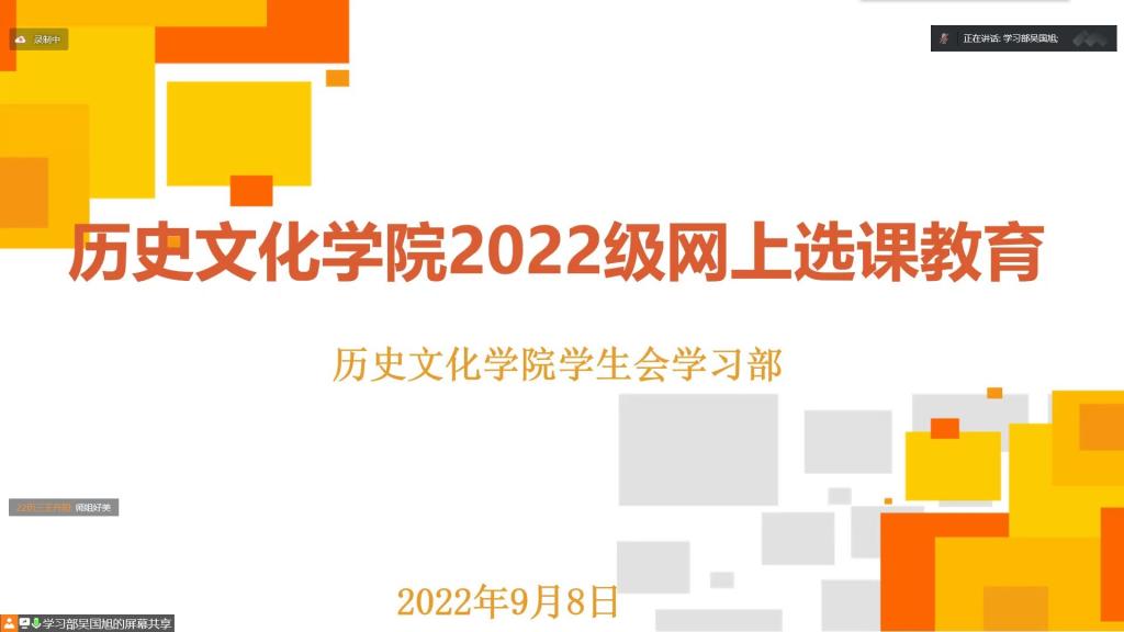 为使大乐透 2022级新生尽快熟悉选课流程,帮助同学们按时、规范选课,9月8日晚,大乐透 举办线上2022级新生网上选课经验交流会。学习部志愿者担任主持人,2022级全体新生以及各班级助理参加交流会。