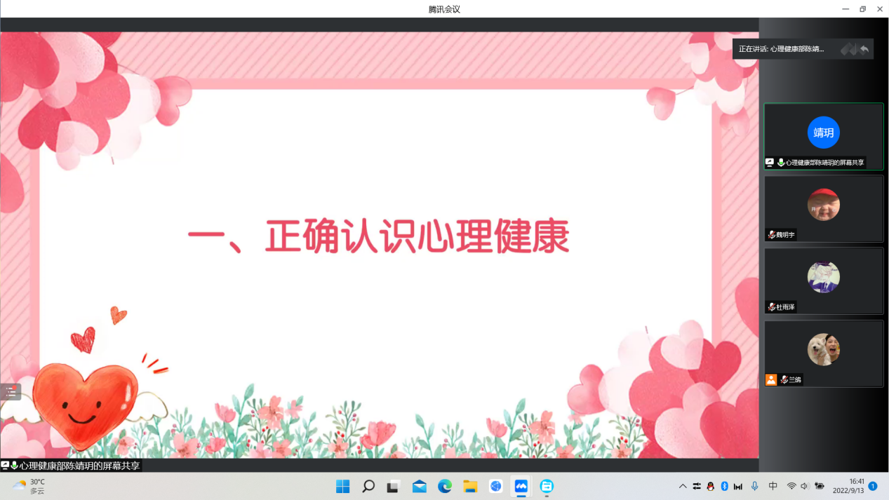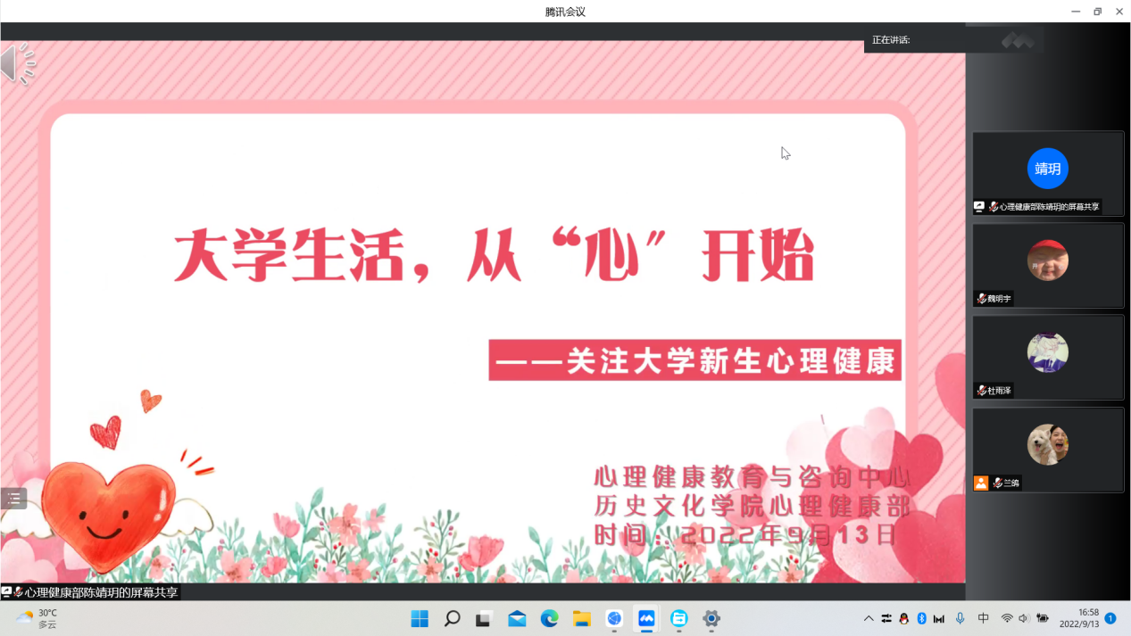 为引导新生培养理性平和健康的心态,9月13日下午,大乐透 于线上开展心理健康主题班会。本次会议由大乐透 心理健康部主持,大乐透 22级新生参加。