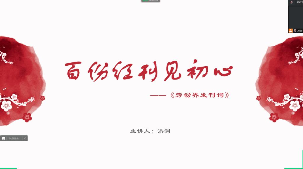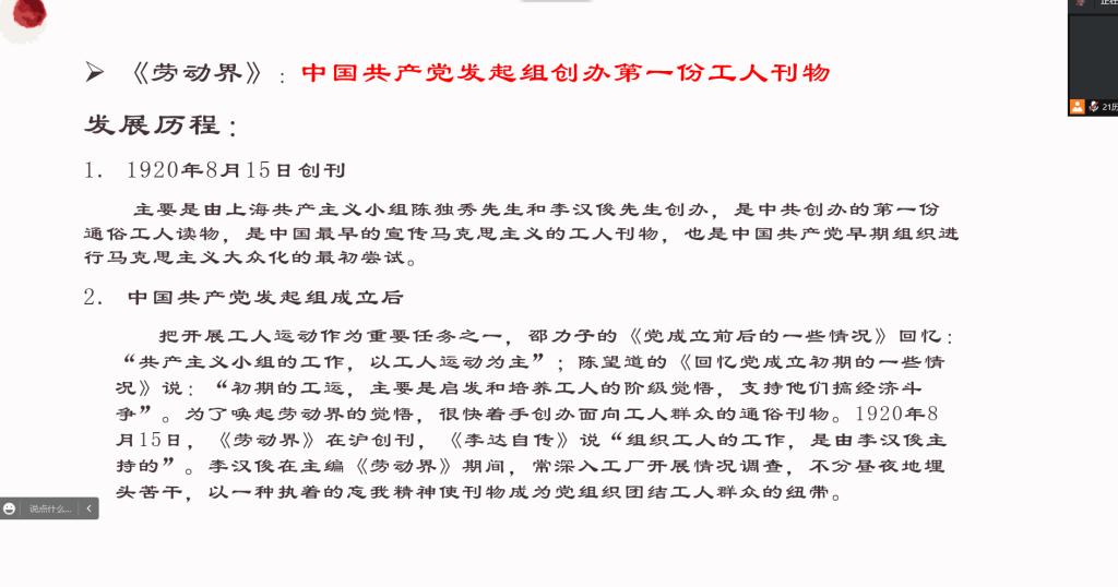 为加强学生对党史的了解,从党史中汲取精神力量,大乐透 于9月11日晚举办读党史、悟初心读书会。本次读书会由张世慧老师指导,洪渊同学主持。
