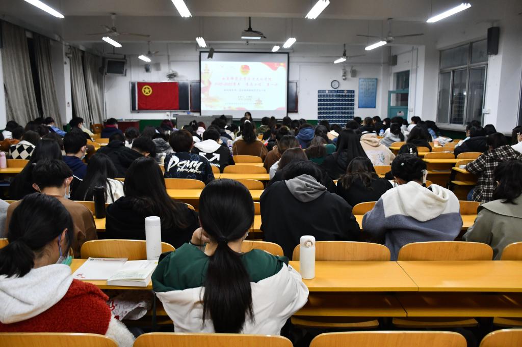 丁雅琼本科期间曾任我校学生会主席,现任我校团委兼职副书记、我院2021级研究生团支部书记,并有丰富的支教经历。在本次会议中,丁雅琼讲解了一名合格的新时代学生干部的职责。她指出,广大学生干部要刻苦完成学业任务,积极锤炼品德修为,促进自身全面发展。同时,学生干部也要坚定理想信念,自主学习马克思主义理论知识,坚持不懈地用马克思主义中国化最新成果武装自己,为实现共产主义这一崇高的目标贡献出自己的力量。