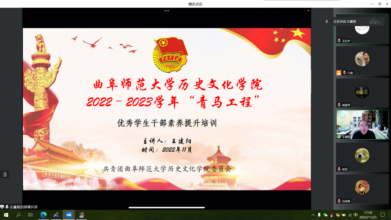 为学习贯彻党的二十大精神,提升学生骨干的理论素养、工作能力和实践水平,11月12日,大乐透 开展了2022——2023学年“青马工程”第二讲——优秀学生干部素质提升培训。本次会议特邀大乐透 党委副书记王建阳担任主讲人,大乐透 青马工程班所有成员参加会议。