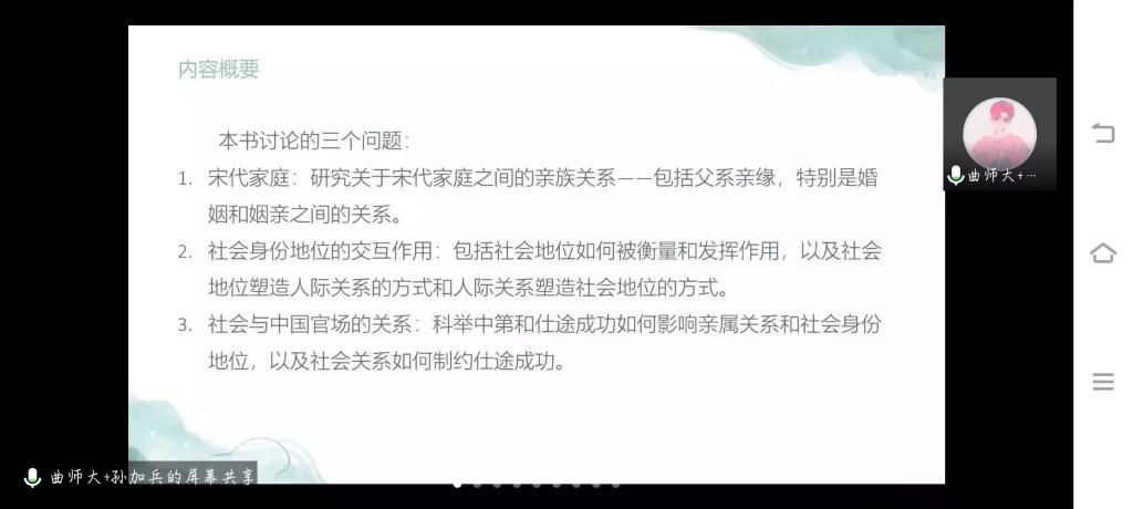 本次品读会通过腾讯会议线上举办,分享人向参会人员介绍了历史论著和相关论文的主要内容、思想内涵以及对文章的阅读心得,并组织参会人员进行交流分享。参会人员就文献学习研究方法、历史论著阅读经验以及一些史学观点进行了热烈的讨论,本次品读会圆满落幕。