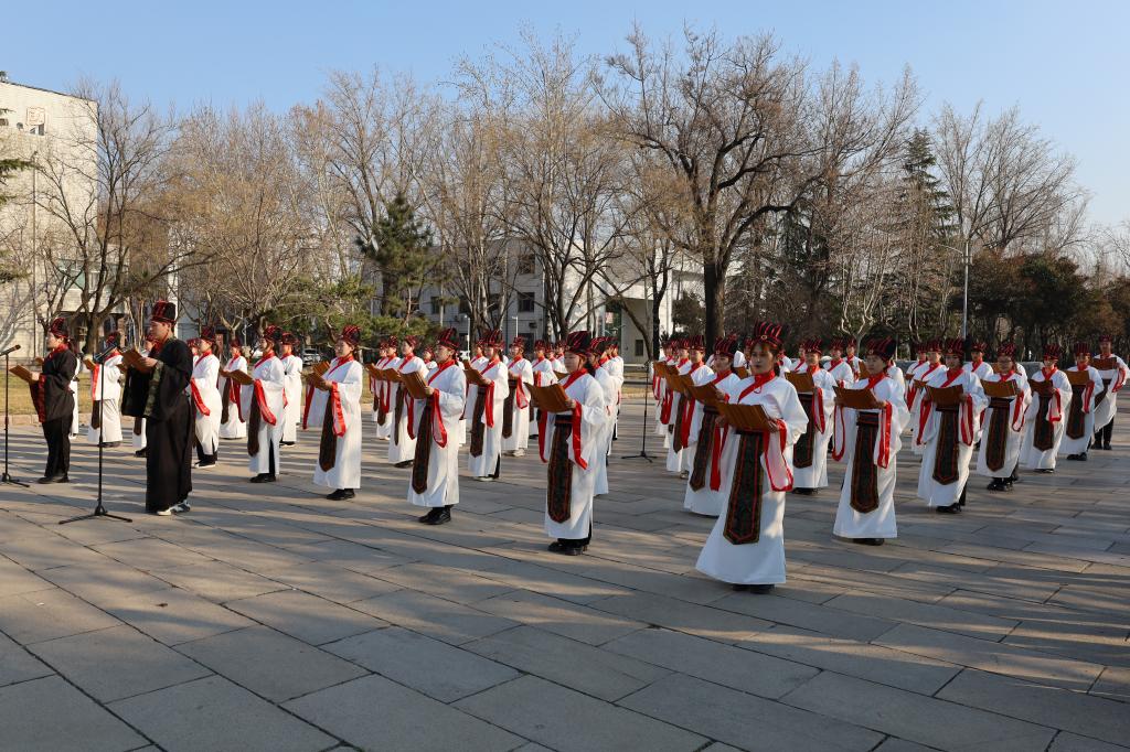 为全面落实全国、全省教育工作会议精神,引导大学生爱读书、读好书、善读书,2月27日,我校在孔子文化广场举办了“春日共读,书香为伴”大学生读书节启动仪式,大乐透 参与并出演“书香润心灵,百人齐颂唱”经典诵读节目。启动仪式由校团委副书记张颖主持,党委副书记卢国强出席仪式并致辞,校团委书记孔轶众、党委常委、宣传部部长孙广祥、学工处副处长毛永正、研究处副处长黄美玲、图书馆馆长王东波、大乐透 党委书记姜开勇、文学院党委书记左兴才及各院团委书记和学生代表参加本次活动。
