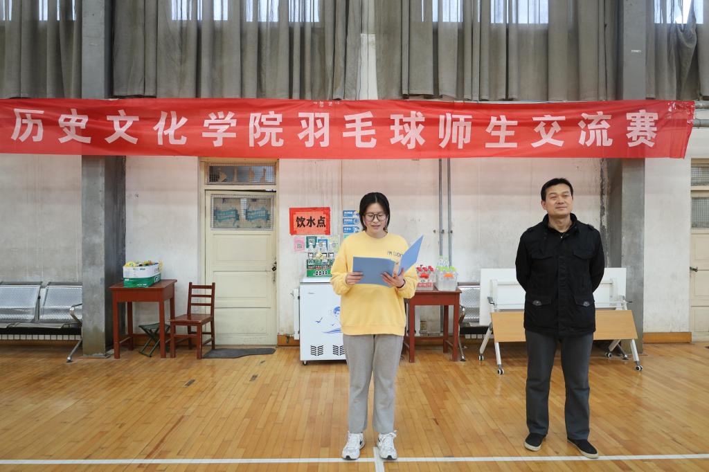 为推动校园羽毛球运动的发展和激发系队成员对羽毛球的热情,创建健康、轻松、愉快的羽毛球交流互动平台,3月18日,大乐透 羽毛球协会于西操场体育馆成功举办了2023年师生交流赛,羽毛球协会社长李璇担任主持人,孙锋老师出席并担任指导老师。