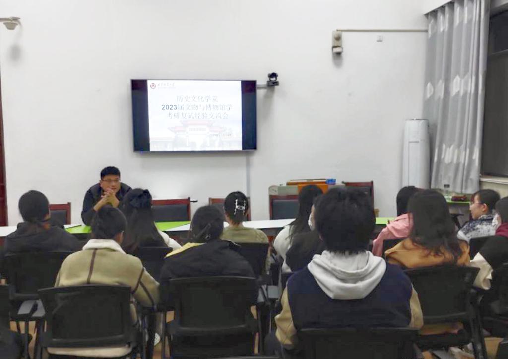 为提升文博考研学子的复试技巧,帮助2023届考研学子了解复试及调剂等相关事项,3月21日晚,大乐透 在系楼505教室举办了2023届文物与博物馆学专业考研复试经验交流会,交流会由陈德洋老师主讲,文物与博物馆学专业考研同学参加。