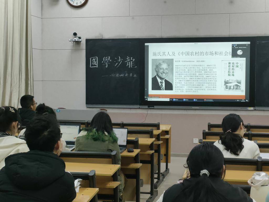 首先,由活动主持人常景剀向同学们介绍本次活动的具体内容和安排。而后,三位报告人依次登台分享。20级历史学师范4班的张阴松介绍了施坚雅先生的著作《中国农村的市场和社会结构》,并对其自身阅读该著作的所思所得作了精要的报告;19级历史学师范2班的杨超同学就自身的本科期间学习经验与观众分享,同学们受益良多;来自19级国学班的李懂浩介绍了一部计量史学领域的重要作品,拓宽了同学们的视野,引发了大家对相关问题的兴趣与思考。最后,同学们就相关问题与分享人展开了讨论。现场气氛热烈,至此本次活动圆满结束。