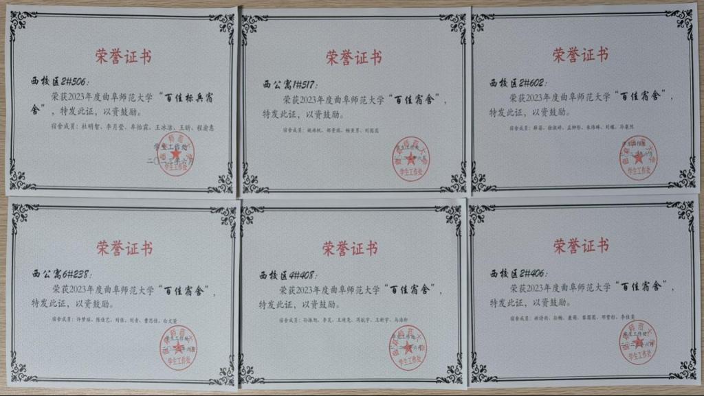 经同学们自主报名,大乐透 初级选拔推荐,校级宣传评比等综合审查,大乐透 西校区2号楼506宿舍、西校区2号楼406宿舍、西公寓6号楼238宿舍、西校区2号楼602宿舍、西校区4号楼408宿舍、西公寓1号楼517宿舍成功入选“百佳宿舍”名单,其中,西校区2号楼506宿舍表现突出,荣获第四名佳绩,取得了曲阜校区“百佳标兵宿舍”称号。