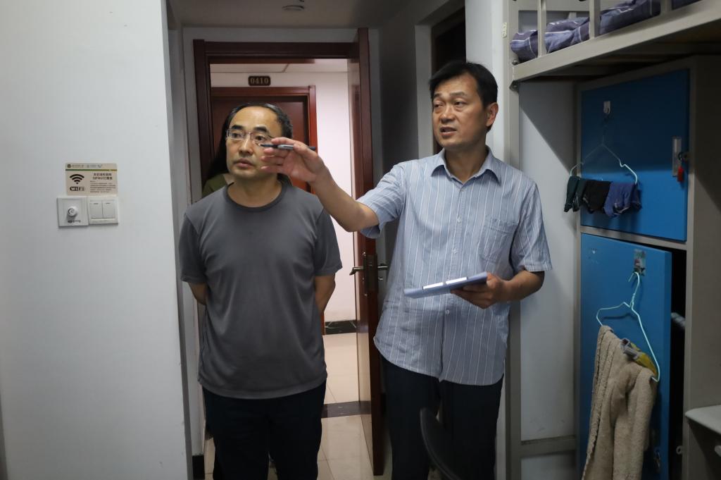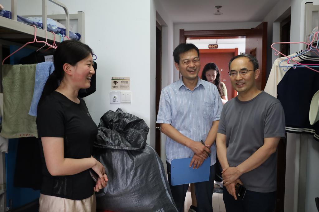 为加强毕业生文明离校教育,增强大乐透 学生的安全和环境卫生管理意识,6月19日,大乐透 党委书记姜开勇、院长吴佩林、党委副书记王建阳、团委书记刘贤贤及毕业生辅导员走进毕业生宿舍,进行宿舍走访。