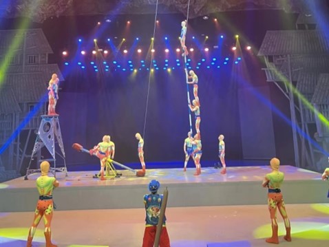 实践队员们在和观众一起领略了重庆国际马戏城的精彩表演之后,直击马戏城后台,探索蹬技表演中的亮点、奇点。据相关负责人介绍,这次表演也可以算作一场科技盛宴。此次杂技表演3D全息声光电,致力于打造赛博朋克美学。此次大秀等比还原重庆地标“朝天门大桥”、“单轨穿楼”、“跨江索道”。杂技演员们通过原创设计的128套服饰进行时空跨越转换,演绎全新的故事。蹬技大秀中分为疯狂原始、唯美浪漫、恢弘壮阔、逗趣欢乐等多个主题的的欢乐旅程,在科技美学与艺术表演中感受前所未有的8D魔幻重庆蹬技表演的独特魅力。