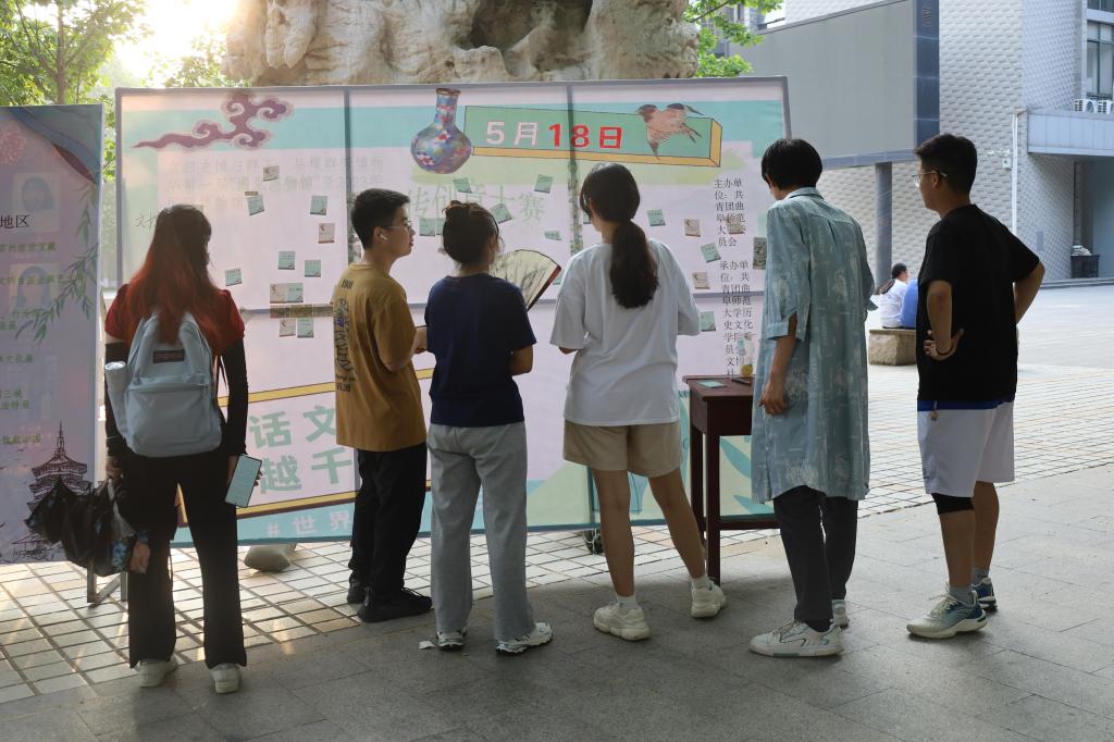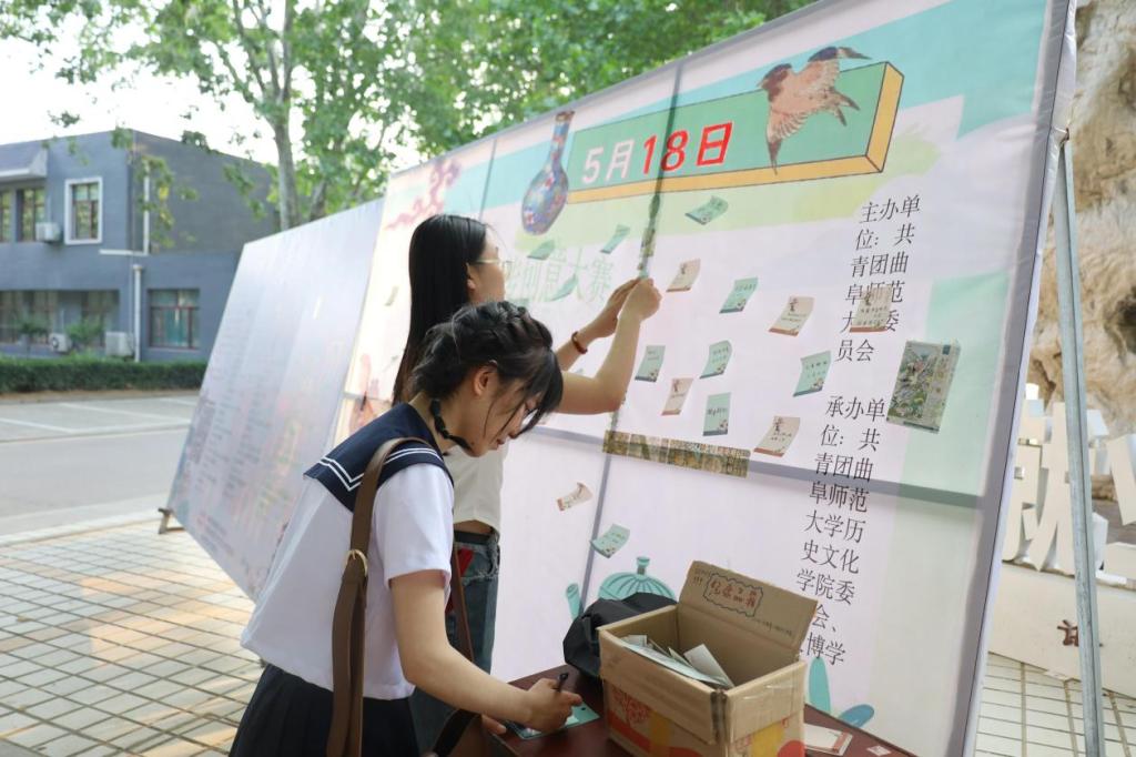 为更好的唤起广大师生们对于博物馆的关注,让更多的师生们了解博物馆,文博学社于2023年5月18日—国际博物馆日,在大学生活动中心广场举办了“遇见博物馆”暨国家博物馆日主题活动,以此来宣传博物馆在生活中发挥的作用。