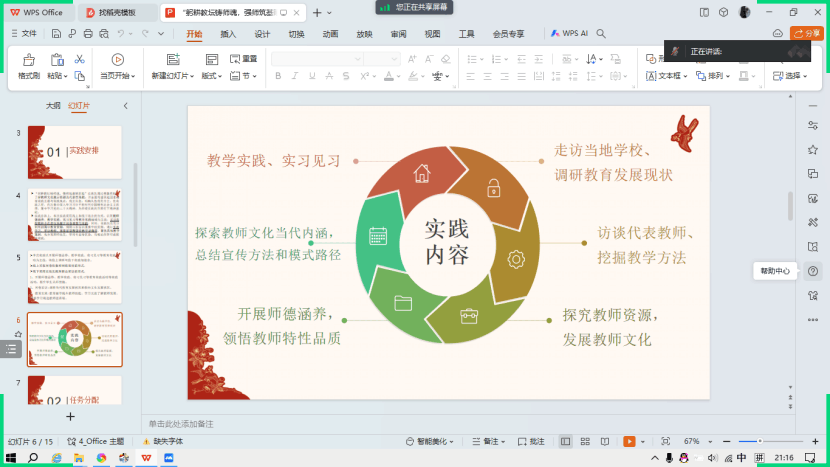 随后,各队员根据自身情况和方案细节进行补充,最终确定本次实践采用线上和线下结合的方式,以开展师德涵养、教学实践、实习见习等教育实践活动为主线,采访在校教师并在居住地展开问卷调查与实践,通过实地学习、采访教师、观看新课程课堂教学录像等,聚焦具体教学案例,将理论所学付诸教学实践。前期部署计划确定行动流程,为完成本次寒假社会实践的各项任务提供了整体规划。