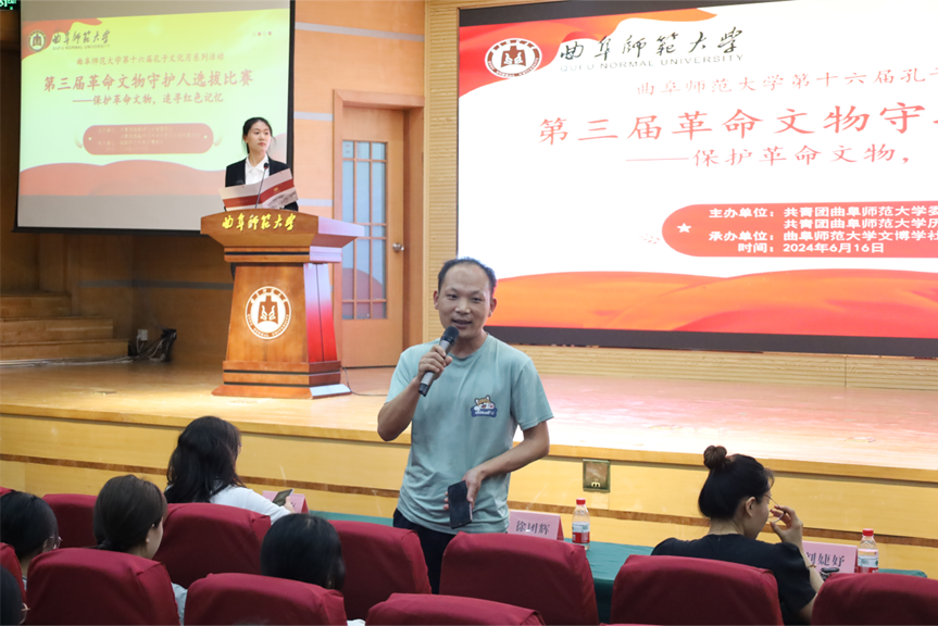 为进一步宣扬革命文物与其所蕴含的革命精神,充分发挥师范生讲解演绎红色文化的专业技能,铭记峥嵘革命岁月,大乐透 文博学社于2024年6月16日下午在孔子会堂举办了第三届“保护革命文物,追寻红色记忆”文物守护人选拔大赛,本次大赛邀请大乐透 徐团辉老师作为评审老师。