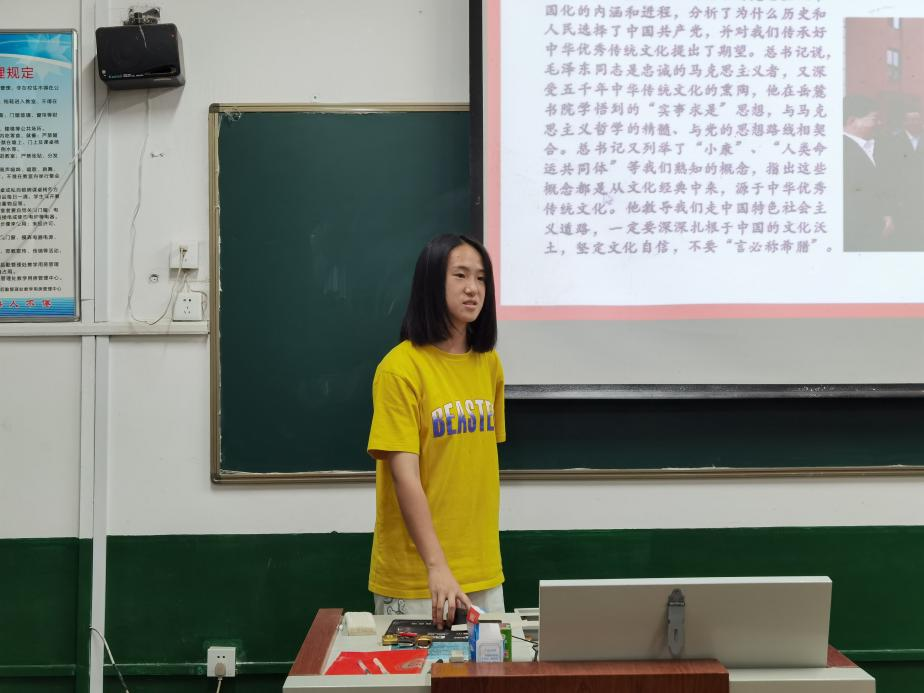 王红宇同学曾任大乐透 团委副书记,作为20级优秀师姐,从党的历史进程、继承中华优秀传统文化等几方面,讲解了习近平总书记讲话精神以及对当代大学生的期望与要求。接着,学员们在会议中相互交流,积极探讨新时代新青年精神。最后,她希望同学们在“青马工程”进行过程中,能够充分发挥青年的主观能动性,积极向上、脚踏实地,勇担时代使命。