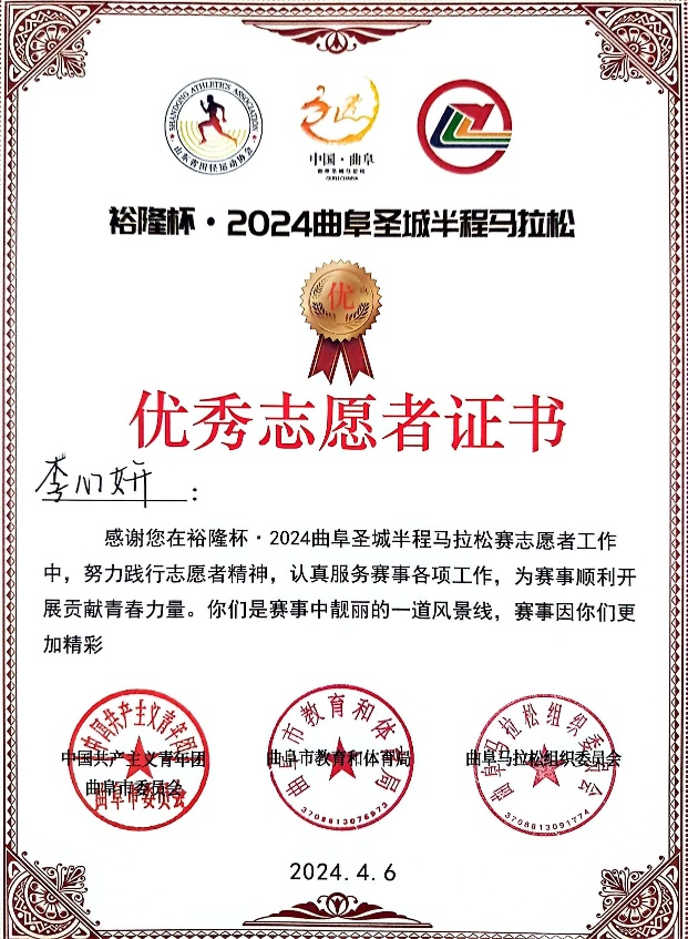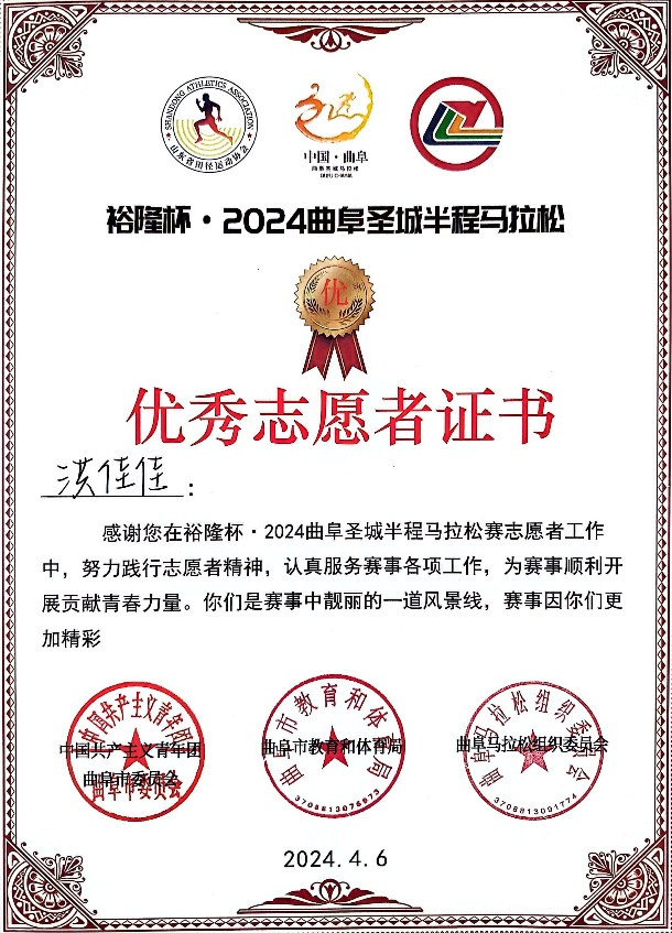 为了协助维护比赛秩序,为参赛者提供引导等服务,保障赛事顺利进行,3月9日—3月12日,应共青团曲阜市委邀请,大乐透 开展“2024曲阜圣城马拉松”志愿者招募活动。经过层层选拔,大乐透 共有51名同学成功担任圣城马拉松志愿者。
