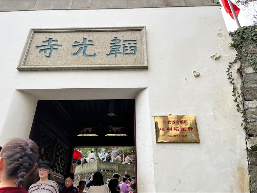 除了在室内区域维护秩序,实践队员们还在灵隐寺的室外通道和庭院中忙碌着。他们引导游客按照指定的路线行走,避免游客因迷路而造成人流混乱。在一些狭窄的通道口,实践队员们会提前设置好警示标志,提醒游客小心通行。在他们的努力下,灵隐寺内虽然游客众多,但秩序井然,为游客们营造了一个安全、祥和的祈福环境。