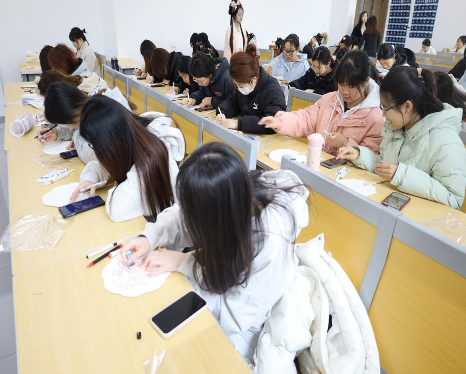活动伊始,主持人详细介绍了团扇的历史渊源与文化内涵,带领同学们领略这一传统器物承载的千年底蕴。随后,在专业老师的示范指导下,同学们拿起画笔,发挥创意,精心勾勒。现场气氛热烈,同学们相互交流、借鉴,分享绘画技巧与灵感。