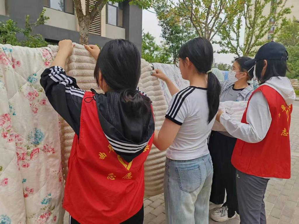 本次活动立足学生实际需求,建立常态化服务机制。学生会每月定期开展"晒被日"活动,密切关注天气变化,及时发布收被提醒,避免被褥淋湿。活动当日,志愿者团队首先对晾晒架进行全面清洁消毒,随后有序组织学生分批使用场地,确保晾晒工作规范开展。