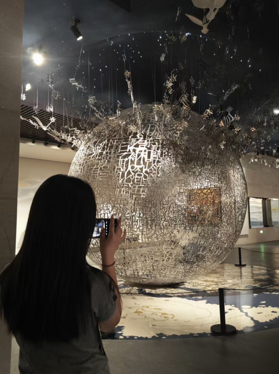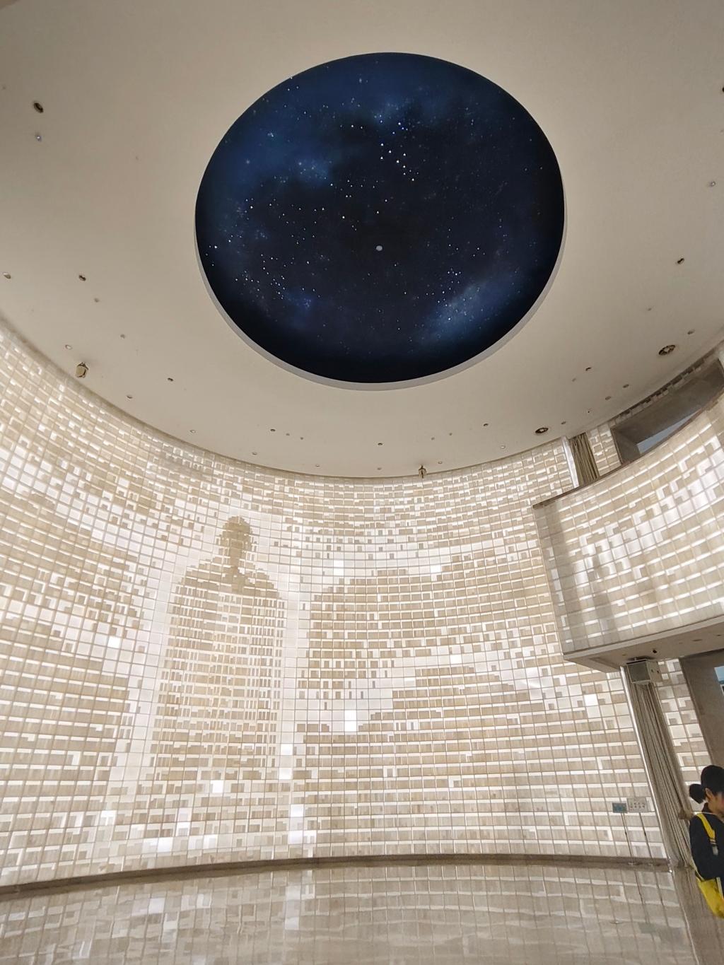 走进孔子博物馆,首先映入眼帘的是大厅。穹顶呈现出星空模样,又深又神秘。据介绍,周围的玻璃幕墙由很多方块组成,排列整齐,共同组成了孔子的模样和山水的轮廓,把传统文化的符号用现代建筑的方式表现出来。实践队员刘小涵表示,孔子博物馆让她感受到了古代和现在的融合,拉近了参观者和历史文化的距离。
