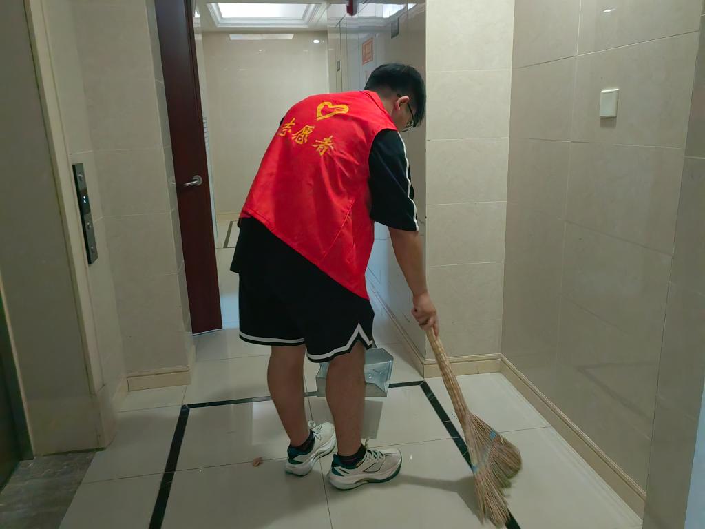 同时,同步展开的居民楼公共楼道清洁工作,要求队员们遵循从上至下的作业原则。同步进行的居民楼公共楼道清洁工作中,队员们遵循从上至下的原则逐层推进。用扫把仔细清扫每一级台阶踏面、楼梯转角平台和门厅地面,清除积存灰尘和丢弃物。对卡在缝隙的细小垃圾使用垃圾钳夹出。清扫完成后,使用湿抹布有步骤地擦拭楼梯扶手、单元入户门内侧面板、楼宇信息栏及信报箱柜体等设施表面。对于底层门禁按键区等高频接触点,额外使用消毒液加强擦拭。
