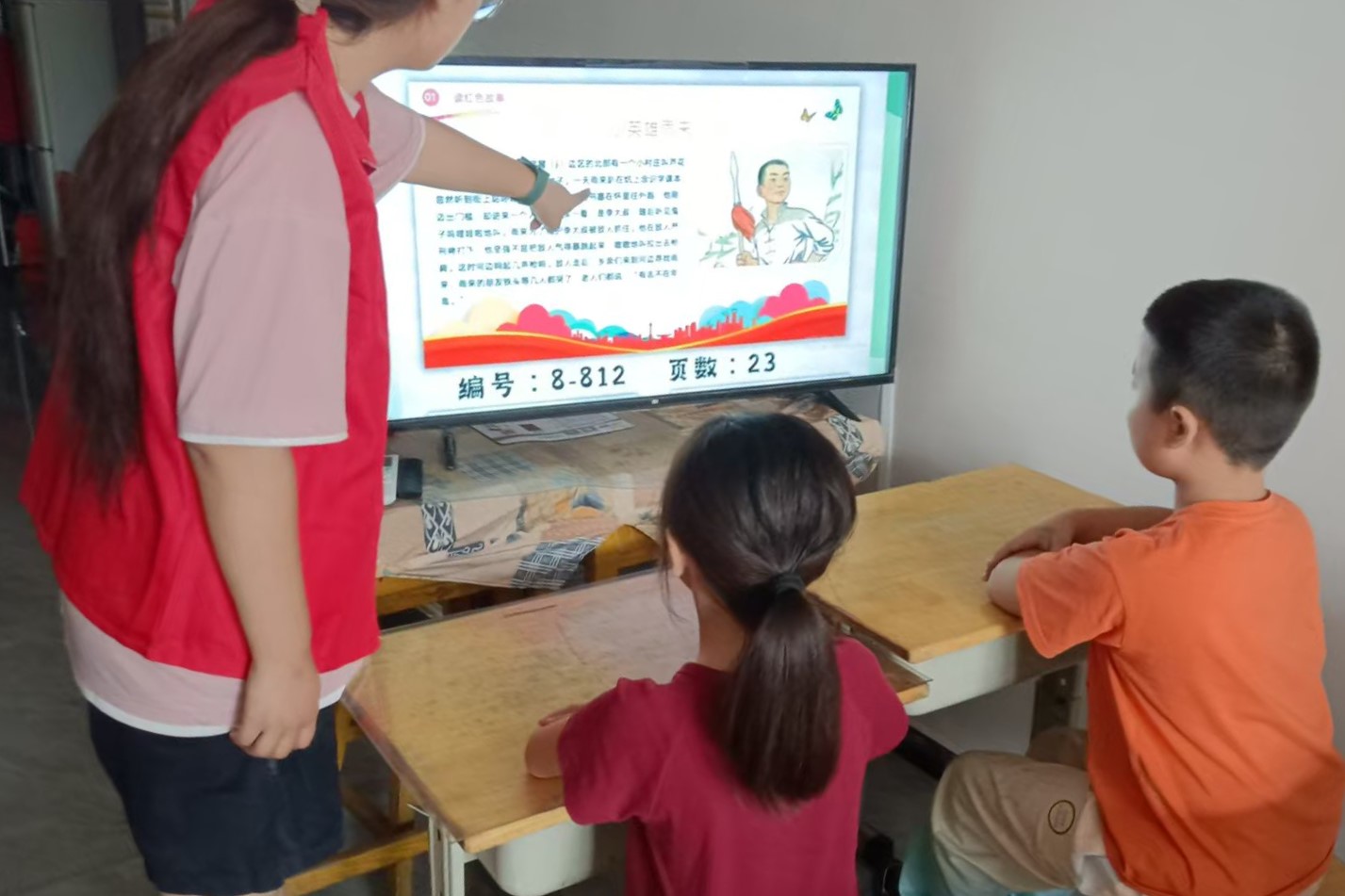 实践队队员以“故事为骨、细节为肉”,将红色历史转化为青少年可感知的精神养分。比如,讲述“小萝卜头”的事迹时,实践队队员还原其在狱中用石子练字的场景,泛黄的纸页上,用炭笔写着歪歪扭扭的“自由”二字让孩子们直观感受“困境中的坚持”。针对不同年龄段的认知特点,宣讲各有侧重:对低龄儿童,用动画短片串联关键情节,配合“红星贴纸奖励”强化记忆;对较高龄少年,则增加“历史背景课堂”,用较严肃庄重的语言及视频讲述“抗战时期的少年担当”与“新时代的青少年责任”。孩子们的目光从故事册转向现实场景,红色精神的种子,在一次次历史与当下的联结中,悄然扎根心底。