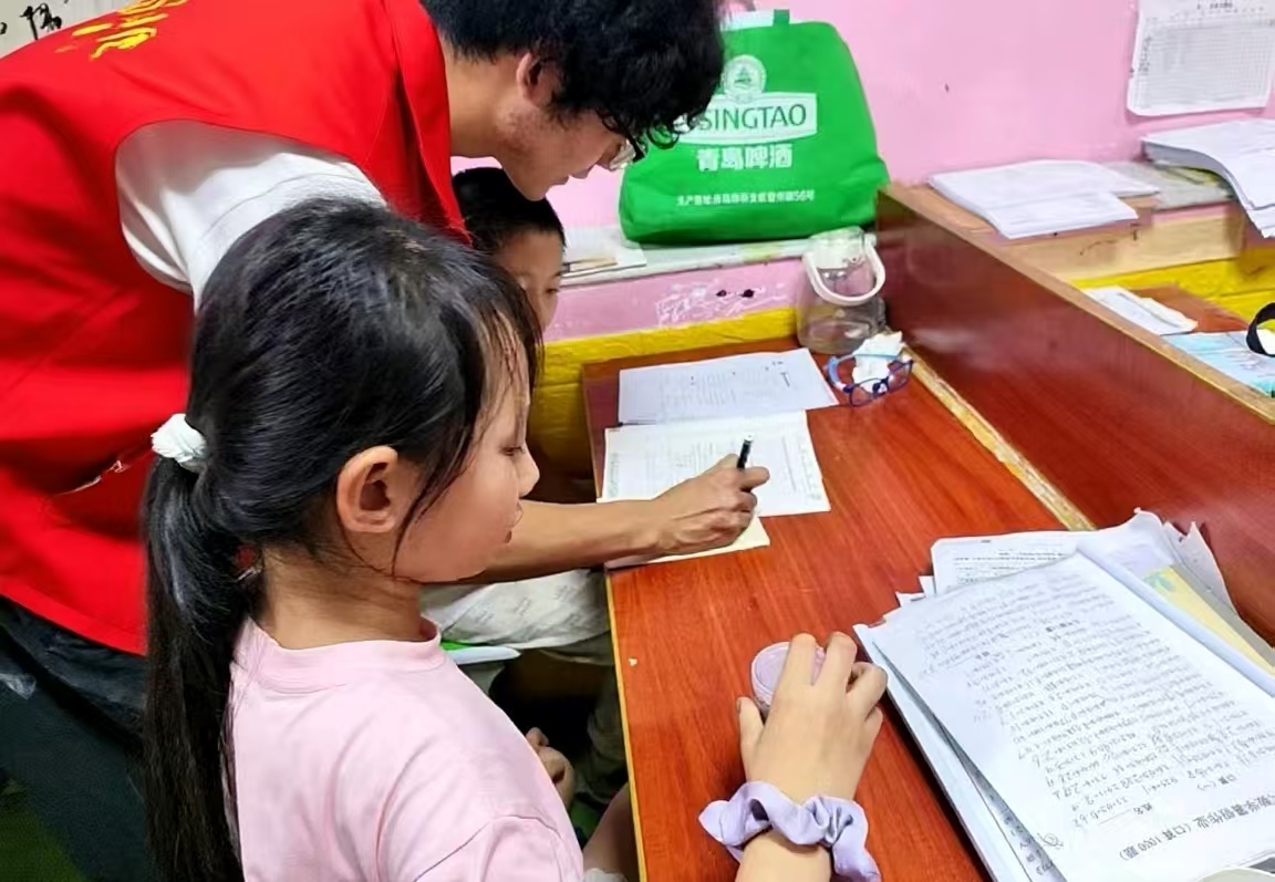 遇到孩子理解困难时,志愿者们不骄不躁,反复举例、细致引导,直到孩子露出恍然大悟的神情。课间休息,志愿者还会组织简单的互动小游戏,如猜字谜、知识抢答,让孩子们在放松中巩固知识,增强学习的趣味性。整个课堂,既有知识传递的专注,又有青春陪伴的温暖,孩子们从最初的羞涩提问,逐渐变得主动交流、积极思考 。