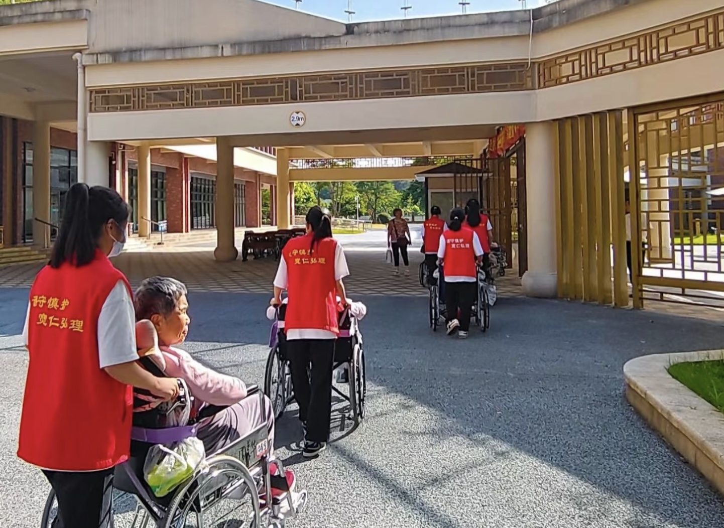 早上社会实践队达到养老院,大部分老人刚刚吃过早饭。为了更好地进入今日的实践主题,队员们分工协作,一人推着一个老人,带着老人感受清晨阳光的温暖。队员吕佳慧一边推着轮椅,一边指着沿途的消防栓科普:“奶奶,您看红色消防栓,就像防诈骗的‘安全阀’,关键时刻拧一下,骗子就进不来。”老人笑着点头:“今天你们就是我的安全阀!”