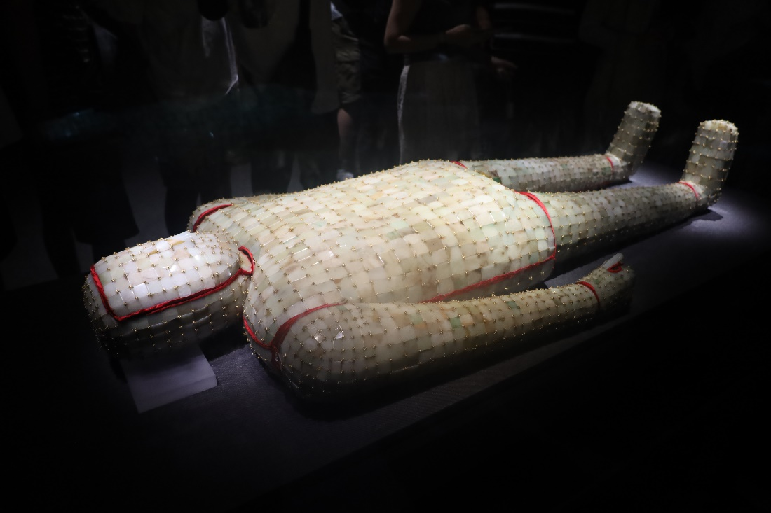 在汉墓出土文物展区,一件件精美的玉器让队员们惊叹不已。金缕玉衣作为汉代帝王贵族的殓服,以其精湛的工艺和珍贵的材质成为了展厅的焦点。玉片之间用金丝精心编织而成,历经两千多年的岁月洗礼,依然光彩照人。队员们围在金缕玉衣前,仔细端详着每一片玉片的纹理和金丝的走向,不禁为古代工匠的高超技艺所折服。这些玉器不仅体现了汉代人们对死后世界的信仰和追求,也反映了当时高度发达的手工业水平和艺术审美。