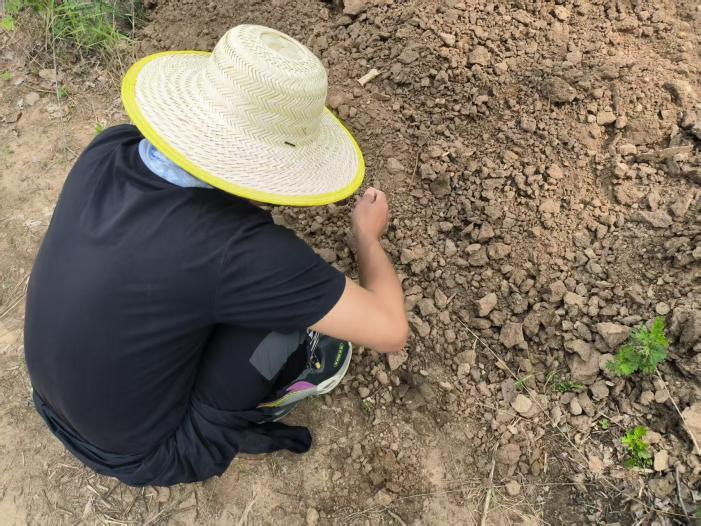 首先,老师现场演示了探铲的使用方法,包括如何下铲、辨别土质和判断文化层。队员们在空地上分组进行模拟练习,按照老师指导的步骤,依次完成刮面、清理和记录工作。在操作过程中,老师逐一纠正队员的动作,确保操作规范。此外,老师还讲解了陶片、瓷片等常见遗物的识别方法,指导队员如何观察器物的形制、纹饰和质地,并据此初步判断年代。队员们认真记录出土文物的位置和特征,填写标签和登记表。讲解过程中,技术人员着重强调了考古工作的科学性与严谨性。通过系统讲解,实践队员对考古工作的专业技术要求有了明确认识。
