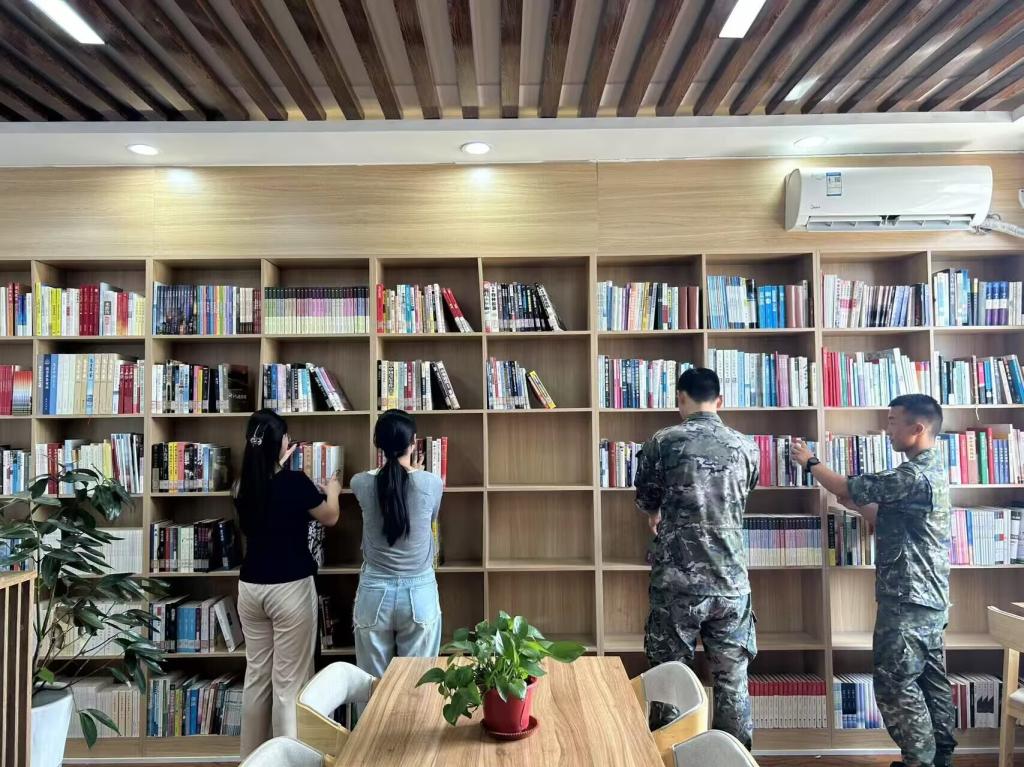 春藤计划实践队暑期社会实践启动后,始终围绕实践必修和选修内容推进工作。在前期调研中,实践队了解到驻地军营官兵在文化阅读方面有实际需求,县图书馆将举行相关的捐赠书籍活动。基于这一情况,实践队与县图书馆协商,协助开展“书籍进军营” 活动。实践队与相关负责人多次沟通,确定活动流程,明确读书分享的书籍和图书整理的具体方案,确保活动能切实服务于军营文化建设。