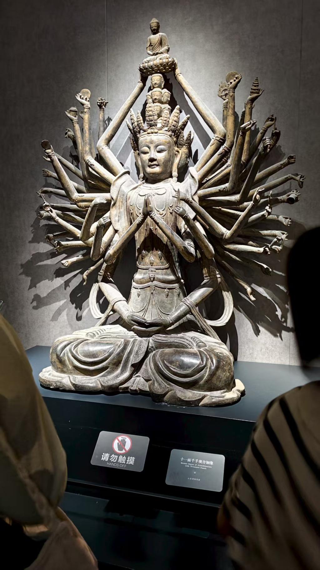 山东省博物馆除了以时间为主线,设置了从史前到明清的一些基本陈列,它还开设了专题展览。实践队员们便来到了佛像艺术展。博物馆的佛像艺术展,宛如一座艺术的宝库,让实践队员们领略到了佛教文化的独特魅力。