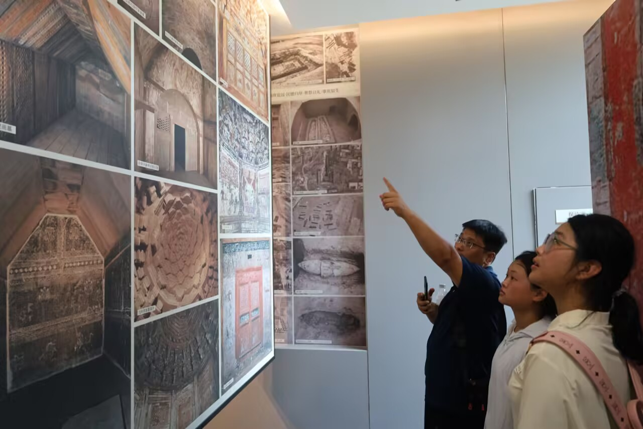 实践队员们还走访了博物馆的数字化展厅,通过3D投影技术“走进”复原的北宋壁画墓。当屏幕上的砖雕壁画“活”了起来——侍女端着酒壶款款而行,乐师奏响古乐,实践队员们仿佛置身于千年前的宴饮场景。“科技让文物‘说话’,让历史‘可感’,这为文化传播提供了新路径。”