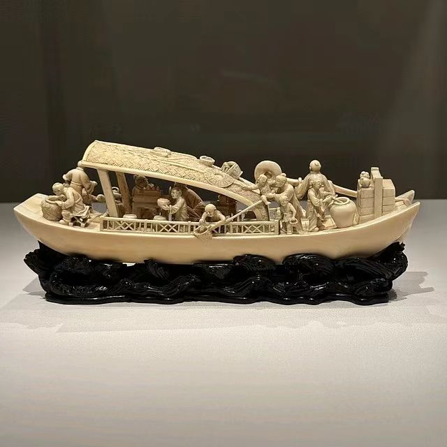 在众多展厅中,非遗牙雕展区无疑是最吸引队员们目光的地方。牙雕作为中国古老的传统手工艺之一,有着悠久的历史,是中华民族非物质文化遗产中的璀璨明珠。香港故宫博物院馆藏的牙雕作品,涵盖了不同时期、不同风格的精品,每一件都堪称艺术佳作。