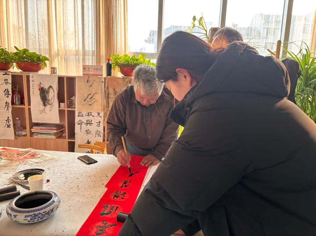为了让社区里的高龄老人、独居老人及行动不便的居民也能感受到新春的祝福,实践队员与社区工作人员组成“送福小分队”,带着刚写好的春联和福字,逐一走进居民家中。队员们不仅为居民送上新春祝福,还与老人们亲切交谈,询问他们的生活状况和身体情况,帮忙将福字贴在门上,让老人们在寒冬中感受到来自社会的关怀与温暖。