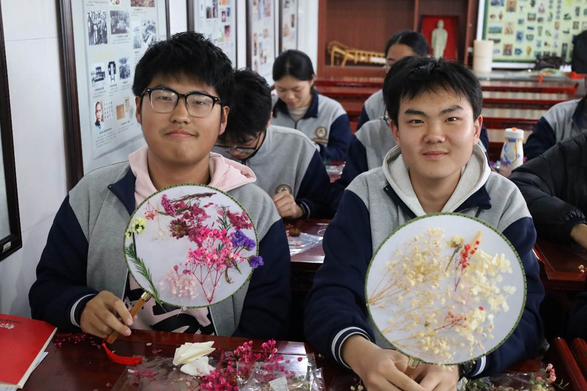 活动伊始,团队队员围绕团扇的历史脉络、文化意蕴展开细致讲解,以通俗易懂的语言阐释非遗文化底蕴,从古代文人雅士的扇面书画,到如今非遗手工艺的创新发展,使同学们对传统团扇文化形成直观深入的认知。随后,同学们积极参与干花团扇制作实践,在团队队员指导下完成花材挑选、布局设计、粘贴定型等工序,沉浸式感受非遗技艺之美,推动传统团扇文化与手工技艺的活态传承。