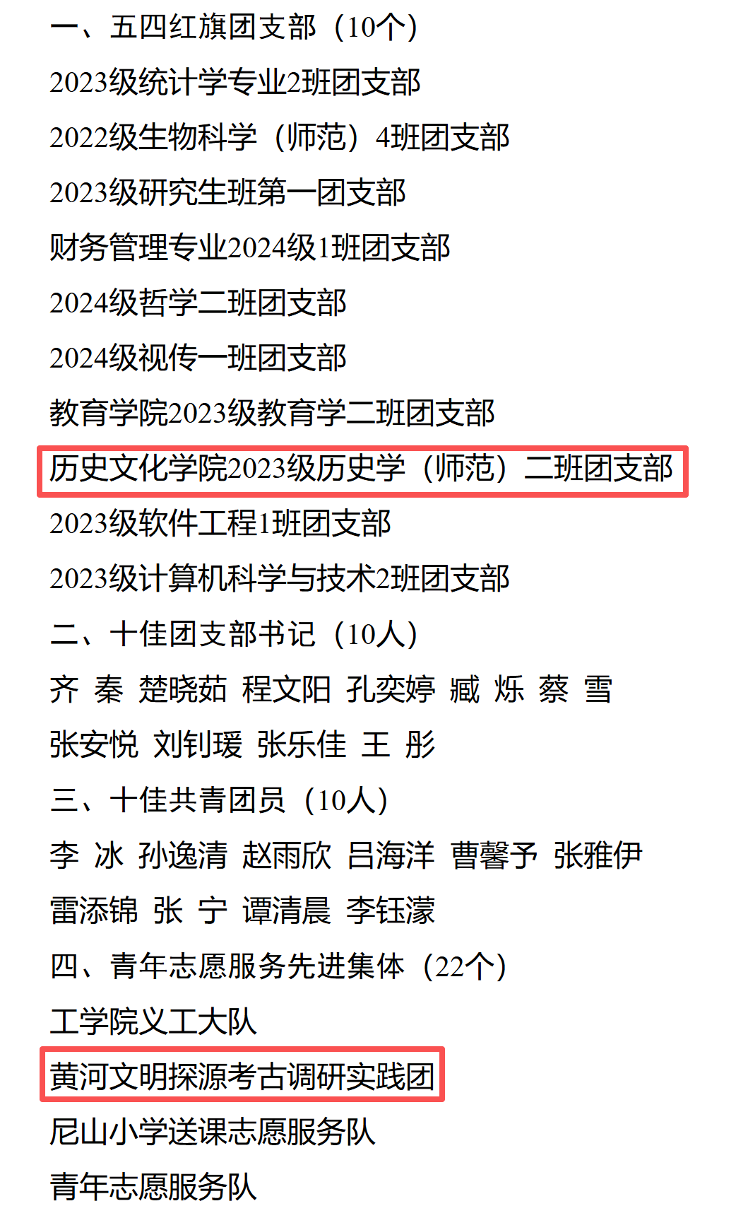 近日,我校共青团委员会积极开展2025年度青年五四先进集体、青年五四先进个人评选表彰,我院学子奋勇争先、表现突出,荣获多个集体与个人荣获校级表彰,充分展现了大乐透 青年昂扬向上的青春风采。我院2023级历史学(师范)二班团支部获“五四红旗团支部”称号,黄河文明探源考古调研实践团获“青年志愿服务先进集体”称号,王亚琪获“青年志愿服务先进个人”称号,寻遗影像社获“明星社团”称号,刘晓晓、李慧获“优秀社团干部”称号。这些集体和个人都在各自领域内取得了显著的成绩,展现了大乐透 学子勤学善思、实干笃行、积极奉献的风貌,是我们的楷模和榜样。