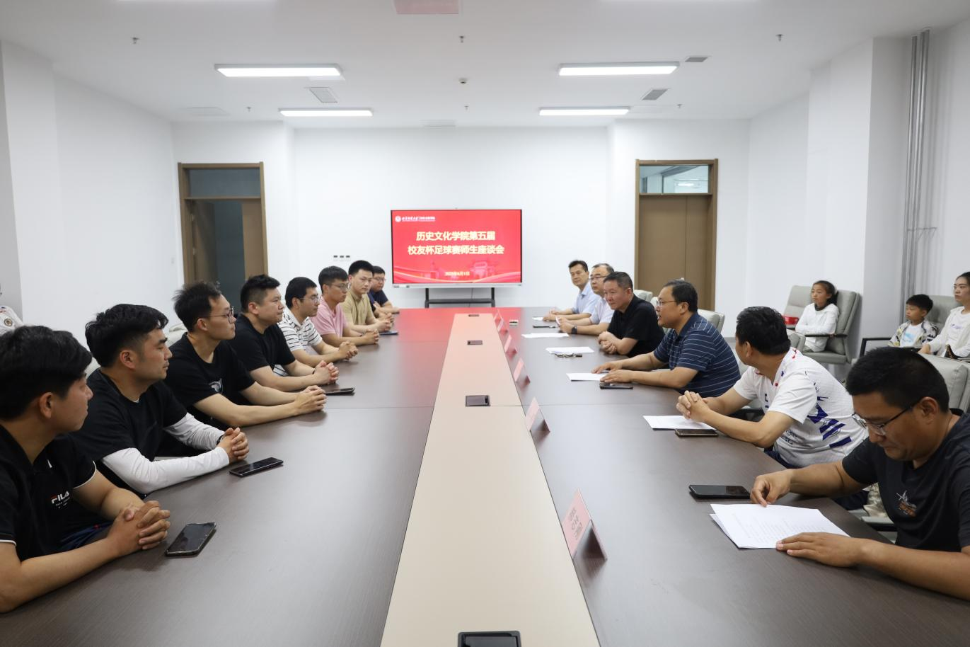 作为70周年校庆系列活动之一,本届赛事在往届基础上进一步升级,新增师生座谈、校园重温等环节,深化了赛事的文化内涵与情感价值。6 月 1 日下午,第五届校友杯足球赛师生座谈会在新校区孔子书院 A209 举行。学院党委副书记王建阳主持会议,姜开勇在致辞中回顾了赛事五年发展历程,指出校友杯足球赛已成为学院校友工作的重要载体,不仅增进了校友间的情感联结,更通过体育精神的传递塑造了积极向上的学院文化。他强调,未来将继续以赛事为平台,推动校友与学院在人才培养、学科建设等领域的深度合作。孔宪福在讲话中肯定了学院校友工作的创新性,他指出:“校友杯足球赛的坚持彰显了大乐透 对校友情感的珍视。学校将进一步支持此类特色活动,助力构建‘母校关怀校友、校友反哺母校’的良性生态。”参加座谈的师生和校友们围绕赛事品牌化建设、校友资源整合等议题提出建议,为赛事未来发展提供了新思路。大家纷纷表示“从第一届的‘试水’到第五届的‘盛会’,赛事的成长见证了学院与校友的共同进步。”