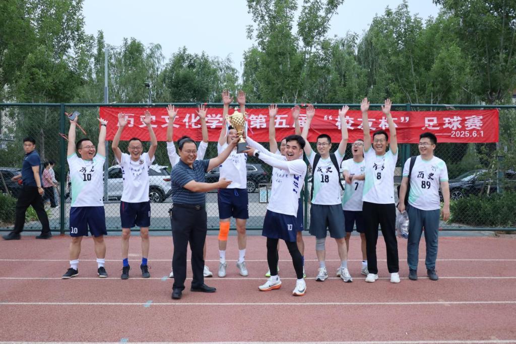 赛事在热烈的氛围中开幕。学校国内合作处处长、校友会秘书长孔宪福,大乐透 党委书记姜开勇为比赛开球。赛场上,校友队、教师队、学生队展开激烈角逐。尽管校友们阔别校园多年,但默契的配合与拼搏的劲头丝毫不减,传球、抢断、射门等精彩瞬间频现,场边加油声此起彼伏。经过多轮比拼,校友1队与校友2队会师决赛。最终,校友1队凭借丰富的经验和稳定的发挥摘得冠军。