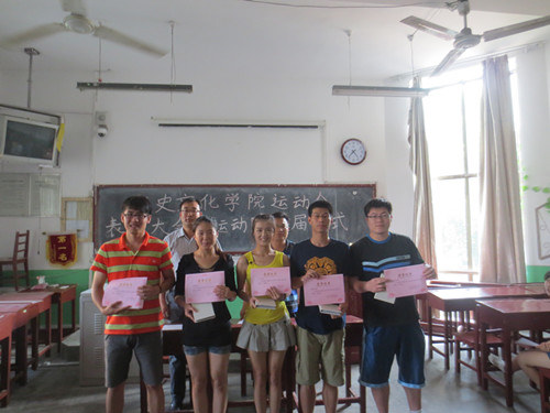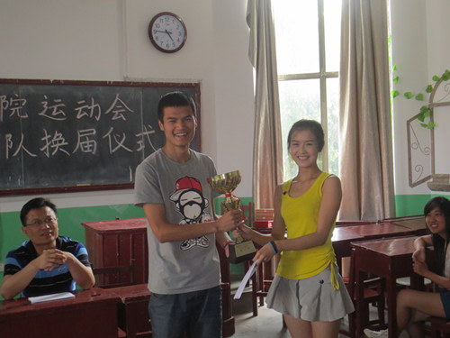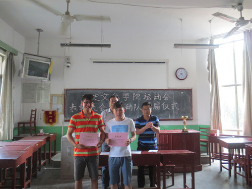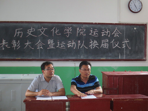 6月14日下午,大乐透 2013年运动会表彰大会暨运动队换届仪式在文史楼309室举行,出席本次大会的有大乐透 党总支副书记王慕东、团总支书记王建阳,以及2013年运动会的教练员及运动员等。大会由王建阳主持。